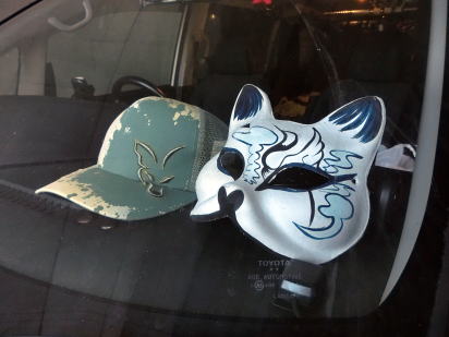 かなり気温が冷えてきている。上着をもう一枚羽織って車中待機しよう。ダッシュボードの上のトレードマーク、狐の面とキャップが少しあさっての方向を向いている。正面に向き直して自分の気持ちも引き締めてから、シートをフラットにした後部座席に腰を落とす。