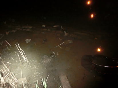 ウグイが初めてアタった事。よもやこれが鯉のアタリの終了の合図ではなかろうな。二番竿の打ち返しと同時に一番竿も回収してみる。15mmのパイナップルは傷ひとつなく返ってきた。手前カケアガリ下の4mラインは今回は不正解なのか。投入前に二番竿と同じ距離に打とうかとも考えたが、やはりここまでの流れを変えたくない。一番竿はまた4mラインを続行することにする。こういう時こそ、まるでアタリがなかった竿にデカイのが来るのではないかという期待も微かにある。一番竿の投入位置については早朝になってから考えることにする。