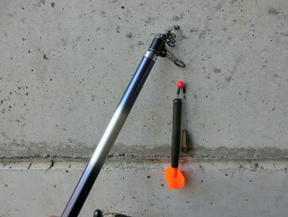 まずはポイント選定から始めよう。マーカーフロートを取り出して軽く投げる。水深約5mのライン。去年の今頃、いやもう少し暖かい日だったか、釣果を得ているポイントだ。マーカーを浮かせたまま、カープロッドでそれに向かってオモリだけの仕掛けをキャスティングし、同じ距離に投入出来るようにラインに目印の浮き止め糸を着ける。マーカーが終わったら、オモリからベイトロケットに付け替えてフィーディングする。それと同じ要領で手前のカケアガリ下水深約4mラインをマーク。去年の釣行では広い範囲にフィーディングを展開させてしまい、針のついたボイリーまでの鯉の誘導を曖昧にしてしまったきらいがあった。今回は極力寄せエサを狭い範囲に集中させ、その中に食わせを入れるようにしたい。