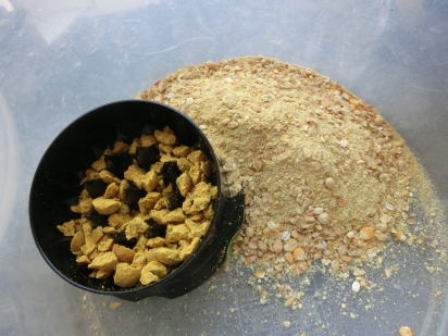 今回はメインライン 「ハイインパクト ハイリーキッジ パイナップル」 をエサに釣りをする。パイナップル系のボイリーを使用するのは初めてのことで不安はあるが、同じ流域の釣り場でパイナップル系ボイリーで釣果を得ている釣り人がいるので、釣れる気がしないわけではない。鼻に抜ける爽やかな香りを鯉はどのように感じ取るのだろうか。寄せエサの内容はあまり広範囲にバラけないよう、比重の重い内容物が含まれる 「鯉夢想」 を使い、その中にパイナップルを砕いたものも混ぜて水で硬めに仕上げて使う。